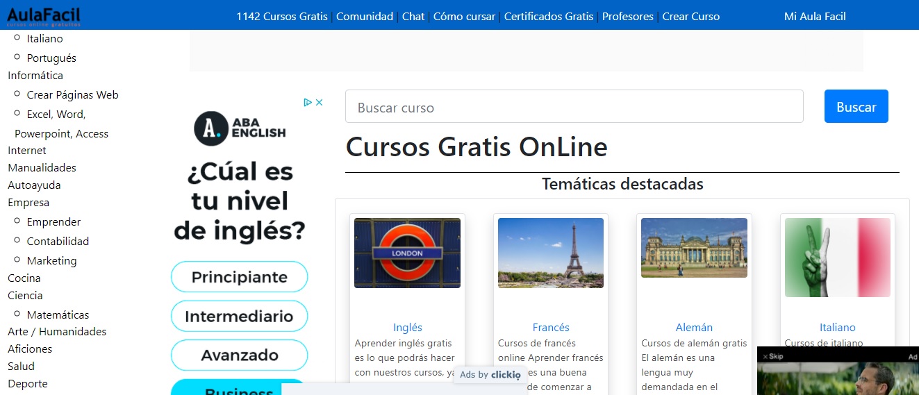 AULA FACIL Web que te permite realizar cursos de idiomas sin registrarte. Enlace a Internet 13/02/2023