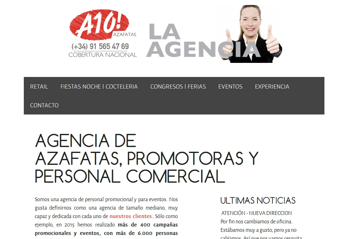 AZAFATAS Y PROMOTORAS A10 Agencia que suministra personal para eventos y campañas promocionales a nivel nacional: azafatas, promotores, coordinadores, cocteleros, animadoras, bartenders, músicos, montadores... Enlace a Internet 28/03/2020