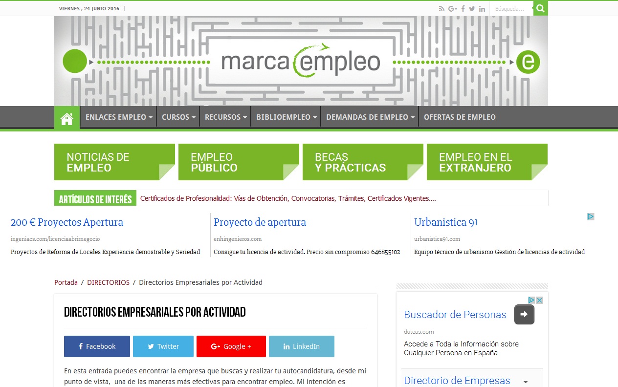 MARCAEMPLEO Enlaces a ofertas empleo diferenciados por sectores. Enlace a Internet 28/03/2020