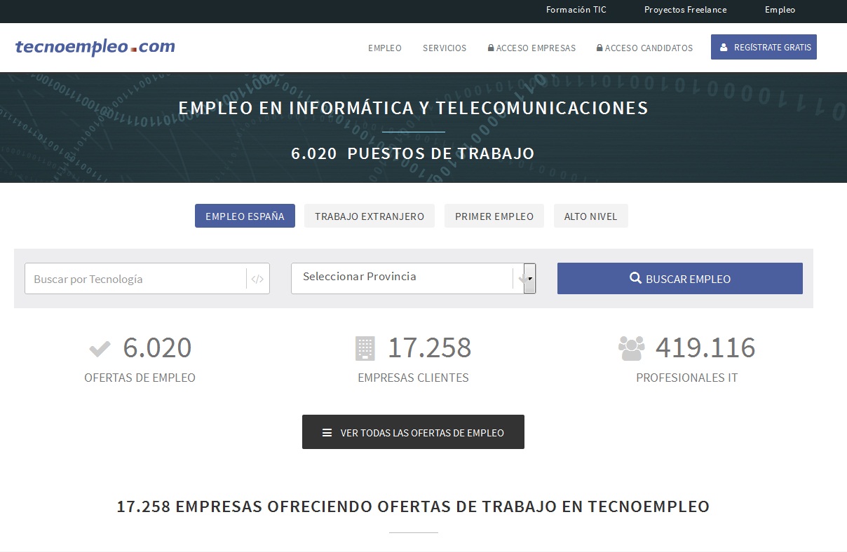 TECNOEMPLEO Portal de Empleo de Informática, Telecomunicaciones y Tecnologías: Ofertas de empleo Freelance; trabajo en el extranjero; Alto nivel ( para Directivos, managers y ejecutivos); Primer empleo, becas, prácticas. Enlace a Internet 28/03/2020