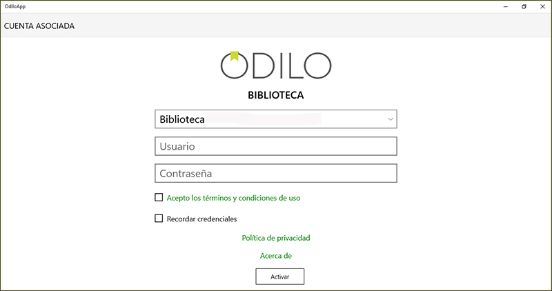 Después de descargarla e instalarla, necesitarás activarla en tu dispositivo: selecciona la biblioteca a la que perteneces e introduce tu ID de usuario y contraseña de la biblioteca.